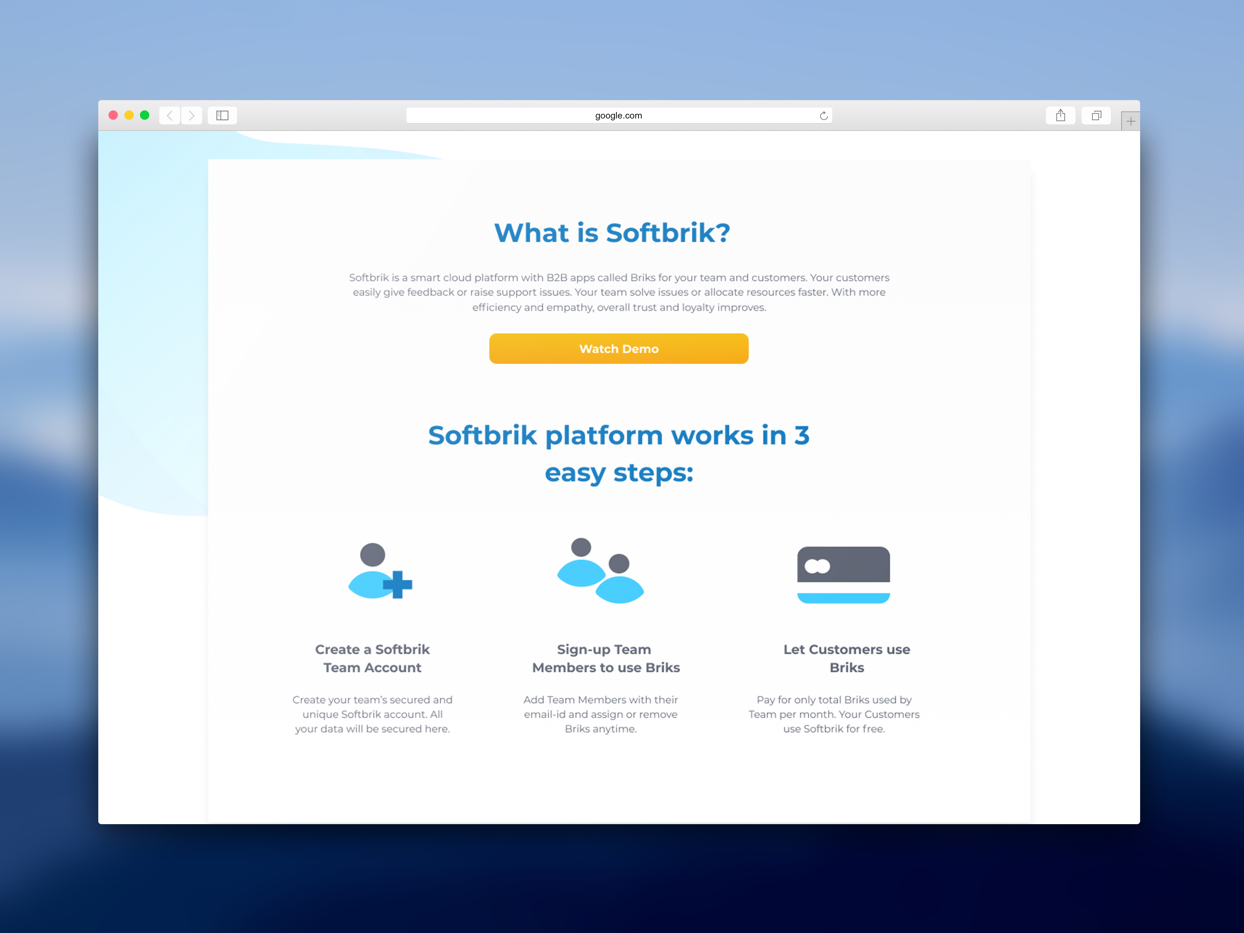 Softbrik is a smart cloud platform with B2B apps called Briks for your team and customers. Your customers easily give feedback or raise support issues. Your team solve issues or allocate resources faster. With more efficiency and empathy, overall trust and loyalty improves. Softbrik platform provides powerful tools for your team to increase ownership and communicate better with your customers to win their trust.
